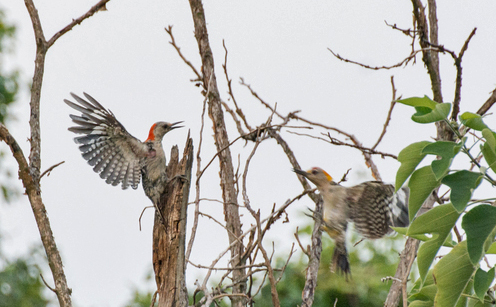 A pair of woodpeckers defended their roost in an old snag just below the Discovery Center grounds. Colton Robbins, who provided the birding list, captured an impressive photo of the encounter.