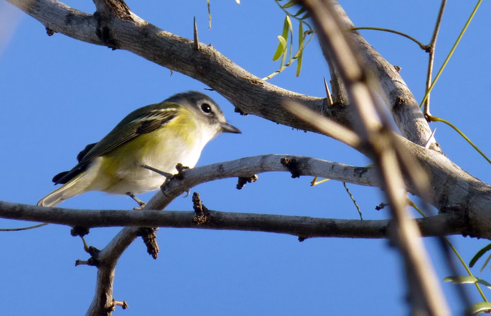 The hour-and-a-half hike yielded sightings of 19 species of birds including a very unafraid and curious blue-headed vireo. The 45 acre natural area was flooded during the Halloween rains and evidence of gravel washouts remain. There are positive aspects to the standing water in all three of the ponds that once served the former slaughterhouse grounds. The abundance of standing water means more wildlife is gathering at the natural area. Fortunately, it is still too cold for mosquitos.