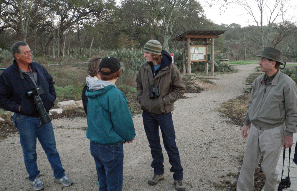 | Stephen Ramirez (center) meets new birders |
