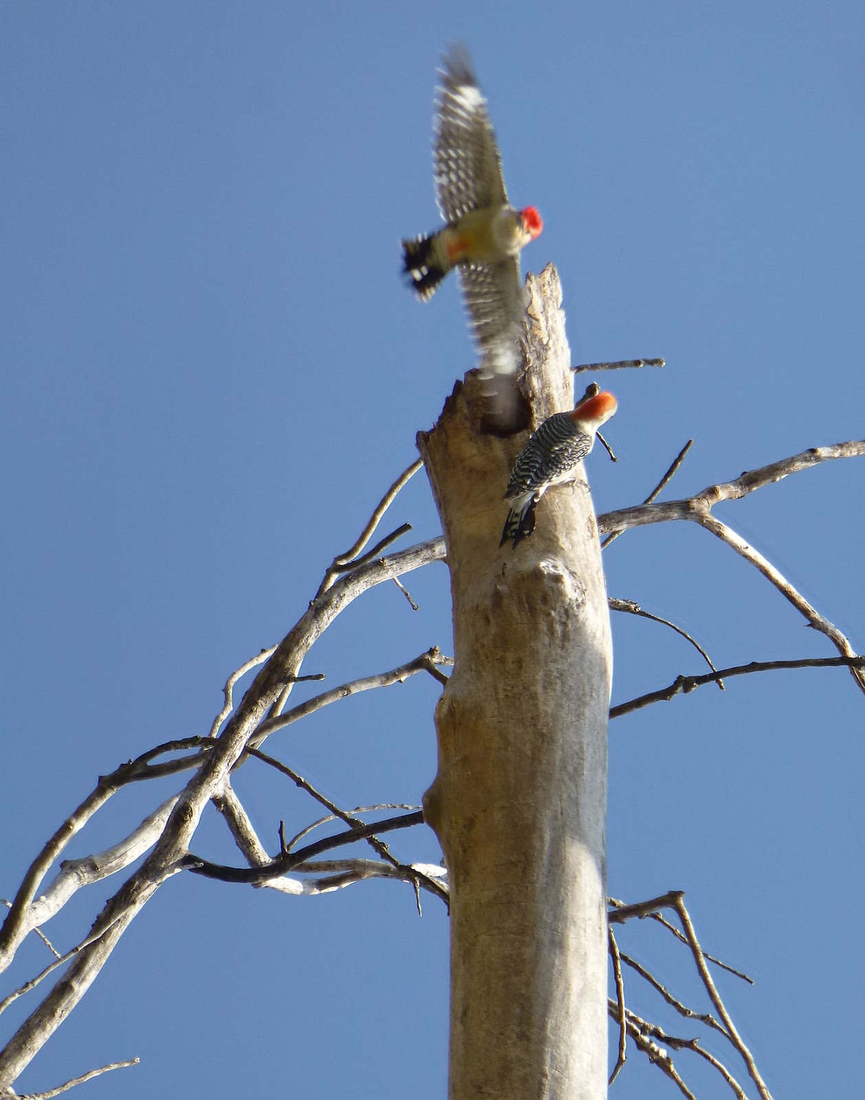 During our hour-and-a-half sojourn we saw many different species including the Cedar Waxwing,Great Egret and more. The snags housed three different woodpeckers; Red-bellied, Ladder-backed and Downy. In some cases we heard the drilling sound and then spied the source.