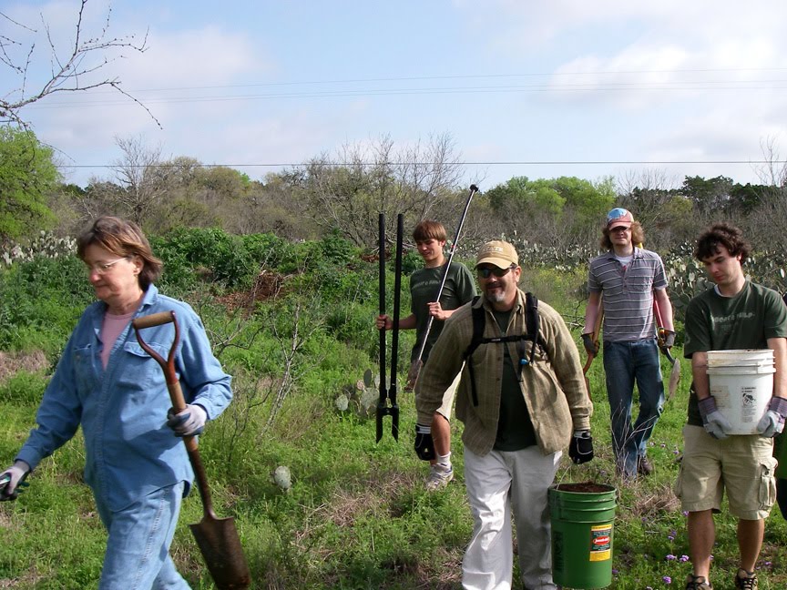 The annual Bobcat Build community service project of Texas State University bumps up the number of volunteer hours devoted to trail maintenance. A regular band of SMGA trail crew members spread their efforts through all six greenspaces owned by the city throughout the year. Click here for more photos from Bobcat Build.