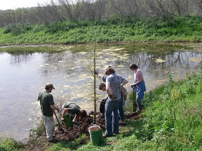 The cypress planting crew was lead by Jo Ellen Korthals who said of the students, “The stalwart young men that planted the 8’ Montezuma cypress sacrificed their shoes in an effort to plant the tree with its roots in the water. They also cleared a wide area around the viewing bench. In the coming years, we look forward to watching the cypress spread its branches over the pond.”