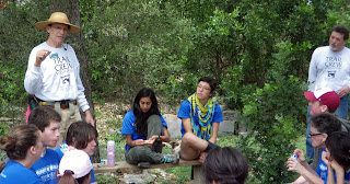 Jo Ellen Korthals lead a group of students in seeding the disturbed bare ground with either native Texas grasses or wildflowers depending on location and germination probability. This is the positive side of habitat restoration to the negative chore of invasive removal.
