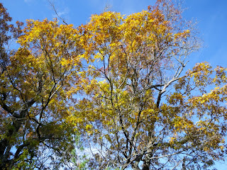 It wasn’t just the trail, only slightly muddy after 1/2-inch of rainfall two days prior, but the distractions on the trail that kept it challenging. The colors of Christmas were everywhere as we saw Spanish oaks bursting worth with vivid reds and yellows. The moss growing around the bowl in the trunk of a live oak and the cactus hanging from the upper branches added a green not visible when the trees are leafed-out. The recent rains and winds dislodged many of the small leaves from all but the ashe junipers and the recalcitrant Spanish oaks.