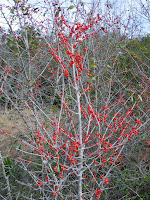 Chickadees, titmouses, cardinals and wrens were out in abundance. At a particularly attractive possumhaw loaded with berries, a mockingbird stood guard over a winter stock of food. One lone red admiral butterfly, was seen flying through the meadow near Hernandez Elementary school.