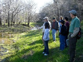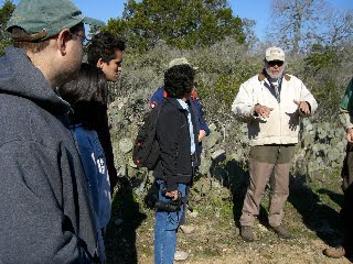 SMGA sponsored its first hike of 2010 on Saturday, February 27 at Spring Lake Preserve. Andy Grubbs, a local geologist who is quite familiar with our area, led 9 of us on a geology based tour of the area. Spring Lake has many layers of the Balcones faultline from Eagle-Ford down to Edwards Limestone. We noted the buds on the Mexican buckeye and the agarita and noted many blooms already popping out. It was a gorgeous early spring day with lots of bird serenade and, with Andy’s help, very enlightening. Thanks Dick McBride for the photos.
