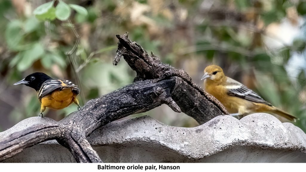 When my husband and I began birdwatching 40+ years ago, there was really only one good bird guide, Roger Tory Peterson’s A Field Guide to the Birds, better known as Peterson’s. I don’t know if newer editions contain these pages, but one of our favorite sources of amusement was the section called “Confusing Spring Warblers” and “Confusing Fall Warblers.” These enabled us to feel a little less stupid when we saw a blur of yellow in spring or fall. Saying, “Oh, there’s a Confusing Fall Warbler” let people know that we were at least intelligent enough to have studied this portion of Peterson’s. Nowadays we have help from myriad books and, better yet, Merlin, the app that can ID even the most confusing warbler from its photo or its call. A big thank-you to the Cornell Lab of Ornithology, which can be found at allaboutbirds.org