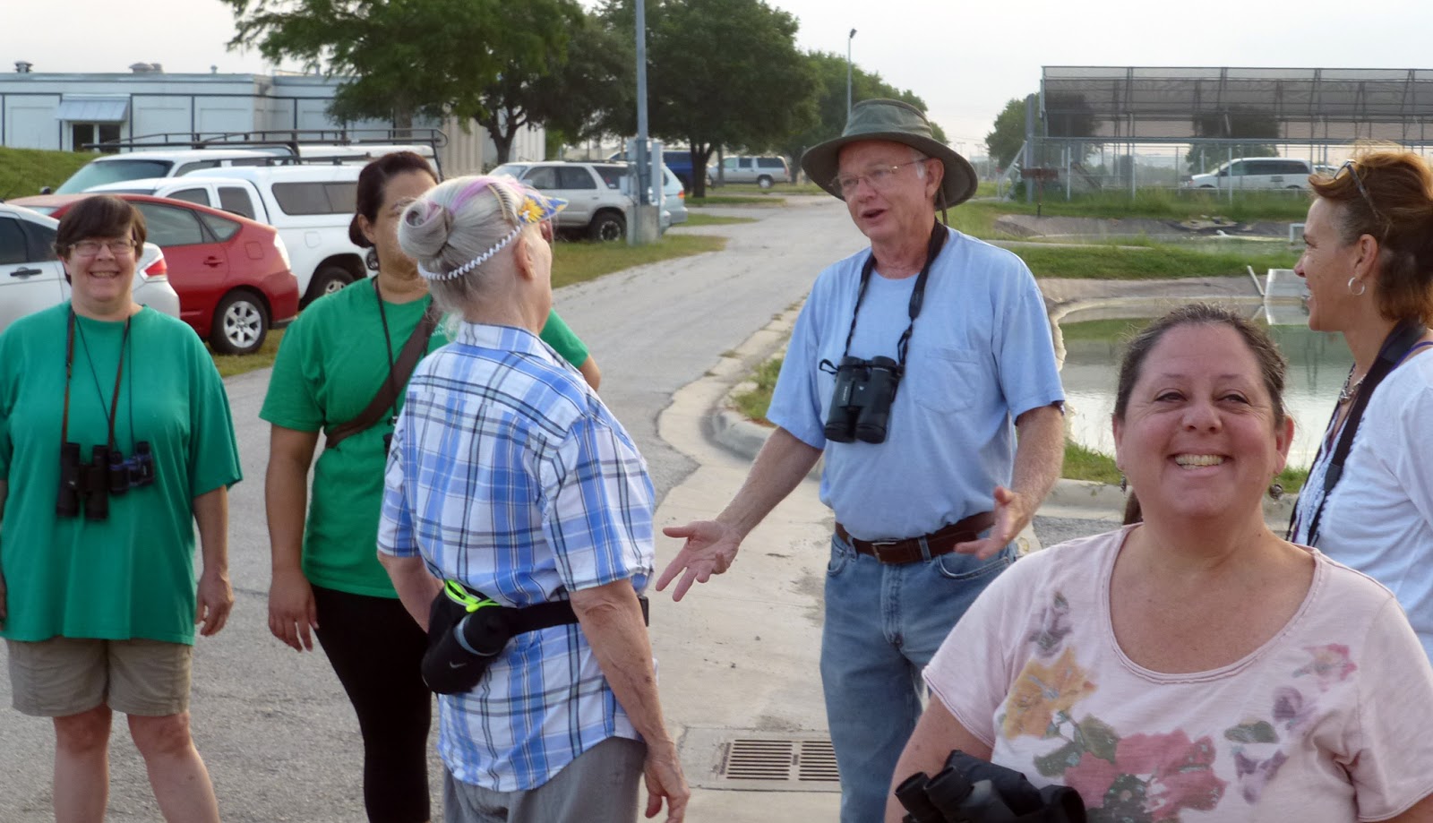 Twenty-six smiling faces watched the sun rise July 2nd over Interstate 35 from the San Marcos Aquatic Resource Center hosted by Dr. Jeffrey Hutchinson, US Fish & Wildlife Service botanist. Our group leader, Stephen Ramirez, was assisted by several Hays County Master Naturalists in answering questions from the large group.