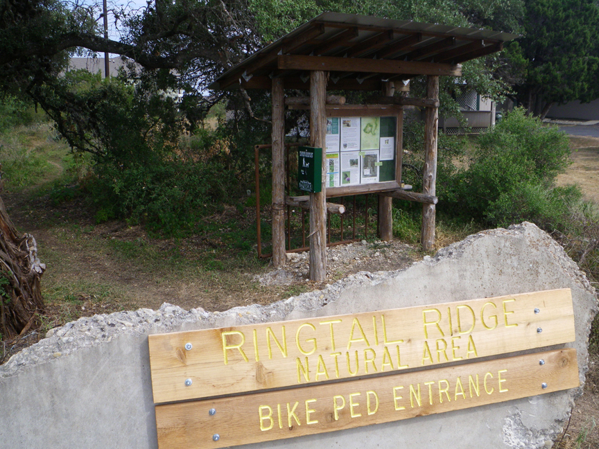 It’s a secret no more, especially if you live at the Edge or Dakota Ranch apartments: there’s another entrance to the Ringtail Ridge Natural Area on Old Ranch Road 12. It’s true, you can only access the back 40 at this entrance by foot or bike, but new signage clearly marks the way for vehicles in between Community Baptist Church and Dakota Ranch apartments.