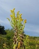 Many of our sightings were made in the tops of the numerous mesquite trees that are dominating the grassland meadow. The grassland included Johnson grass and King Ranch bluestem, both invasives. Goldenrod with brilliant yellow flowers also filled the meadow and will serve as nutrition for sparrows and finches in the coming weeks.