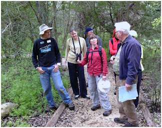 Botanist and neighbor, Minnette Marr, took members of the San Marcos Greenbelt Alliance on a walking tour of Prospect Park, a 45 acre section of Purgatory Creek Natural Area, to discuss plant diversity, invasives, and water quality. This is the third time she has donated her expertise to advising the membership the direction we need to go.