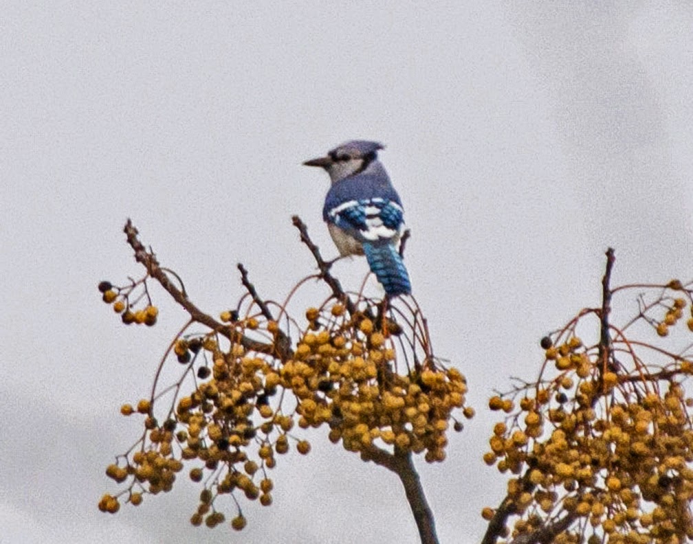 Blue Jay atop Chinaberry tree. [Colton Robbins photo] |