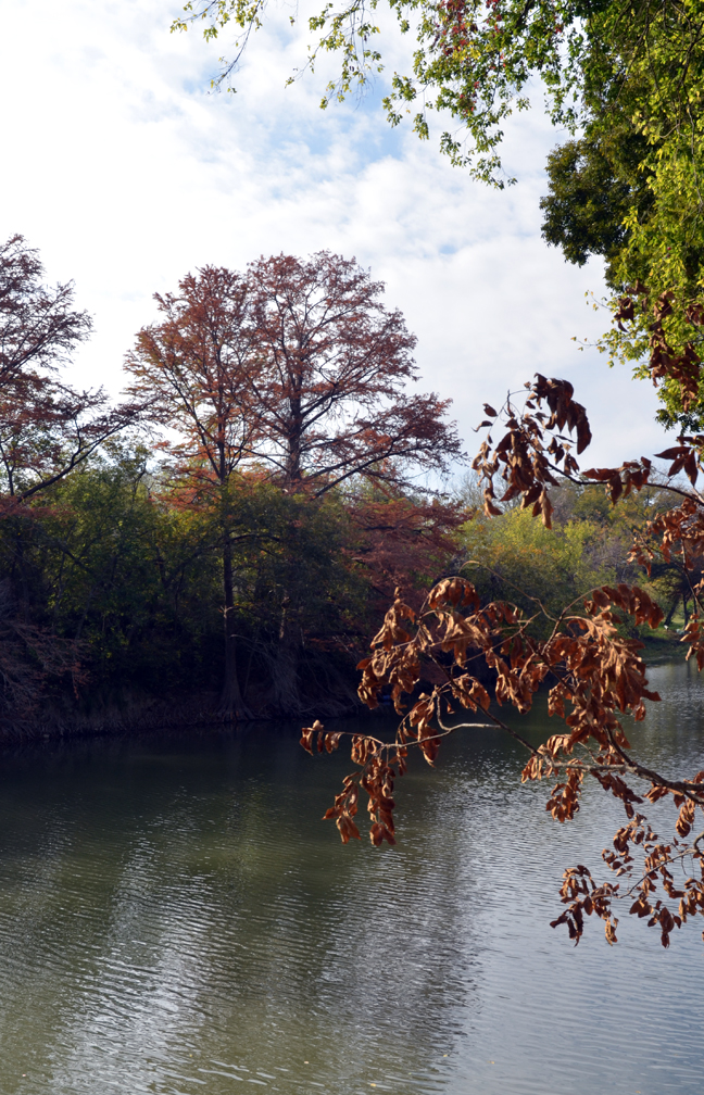 If you are ever in doubt about the importance water makes to our lives, visit the Blanco Shoals natural area on River Ridge Parkway east of I-35. The 81-acre greenspace was set aside by the city and the landowner in consideration of a re-zoning of adjacent property. The strip of land borders the Blanco River and is bounded by cypress, cottonwood and sycamore trees many in fall colors.