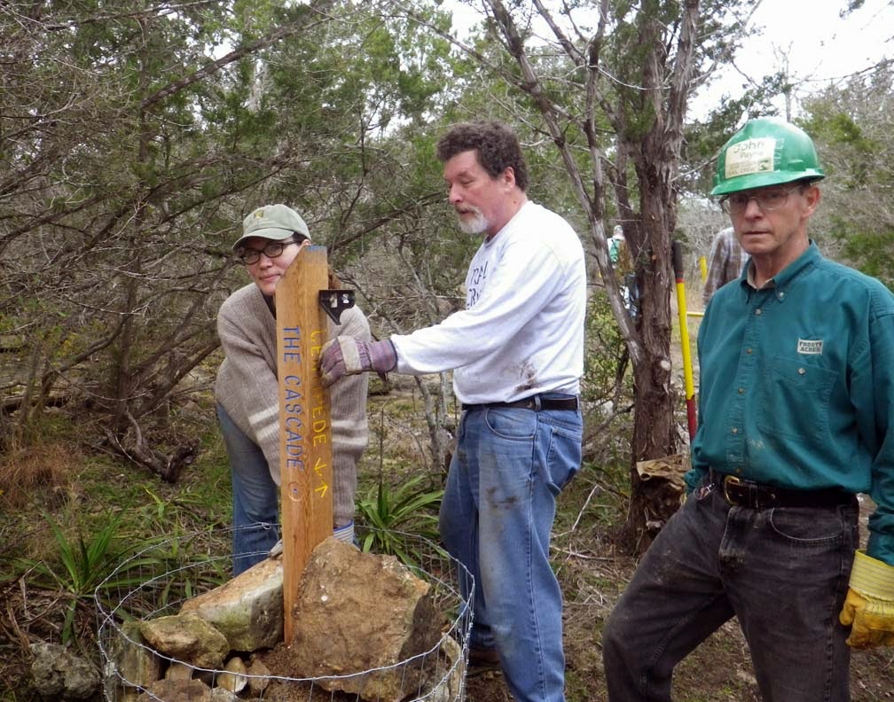 The new trails feature two lookout view sheds and solid bedrock water falls (when running), hence the names Slippery Falls and Cascade. Access points include Lime Kiln road trailhead, Meadows Center parking (fee charged M-F, free on weekends) and soon-to-be started N. LBJ trail head at Hillside Ranch II apartments. This trail will be ADA (Americans with Disabilities) and is being contracted.