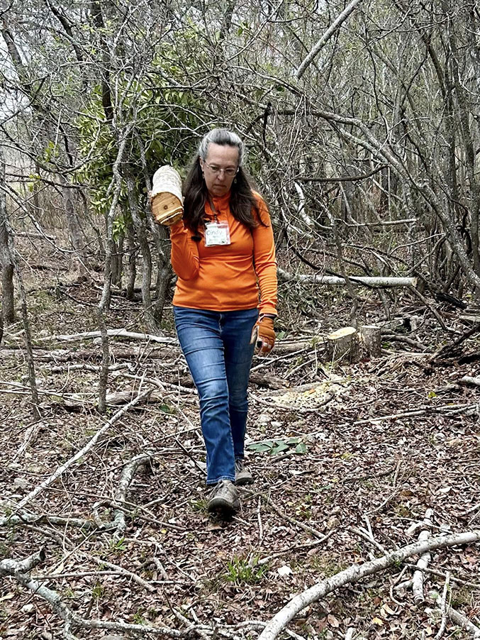 Part of the crew removed old barbed-wire fencing, which is no small task. Team Flora spread more mountain laurel seed in the cut ligustrum berms. Also, in anticipation of April showers, a native mix of wildflowers and grasses were spread within sight of trail users