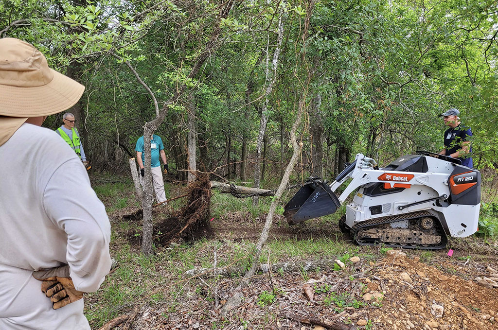 There will be places on the trail that TruGrid material will be used to keep it from being washed out over time. SMRF helped procure a Skid Steer to be used on this project. Though SMGA leans toward manual labor, the precision needed to prep the ground for laying the grid is daunting, so the Skid Steer has become an important tool for this task. Very efficient!