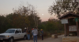 It was a chilly morning as the moon set over Purgatory Creek Natural Area. A few hardy souls anxious to work through the first holiday hurdle of too much good food prepared to improve Dante’s Trail from the Hunter Road trail head. Mostly loping dead branches from drought-stricken trees one group coursed through Nimrod Trail alongside dam #5. Others using weed-wackers cleaned up the overgrown Johnson and KR bluestem grasses. Both are non-native and invasive. Another team scouted a potential alternate trail when floods (rare, they may be) make Dante’s an impassable journey.