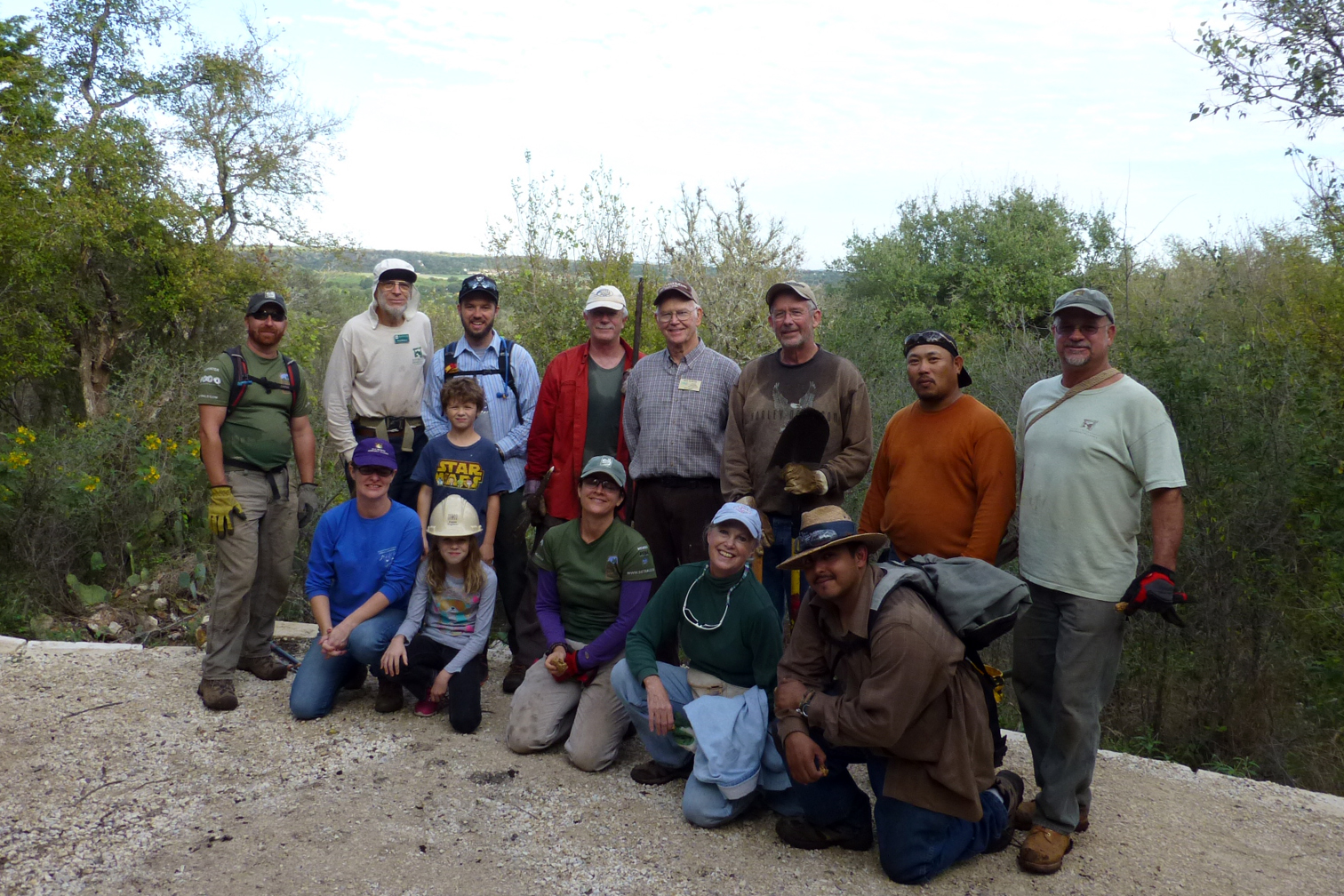 Half of the trainees were local Greenbelt Alliance crew members and the balance were two city employees, Gabe and Bobby; two from Sequin; Nancy and John; Adrian from New Braunfels, and two from San Marcos High School, Adam and Stephen.