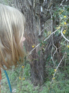 | Annie Wagner enjoys agarita blooms |